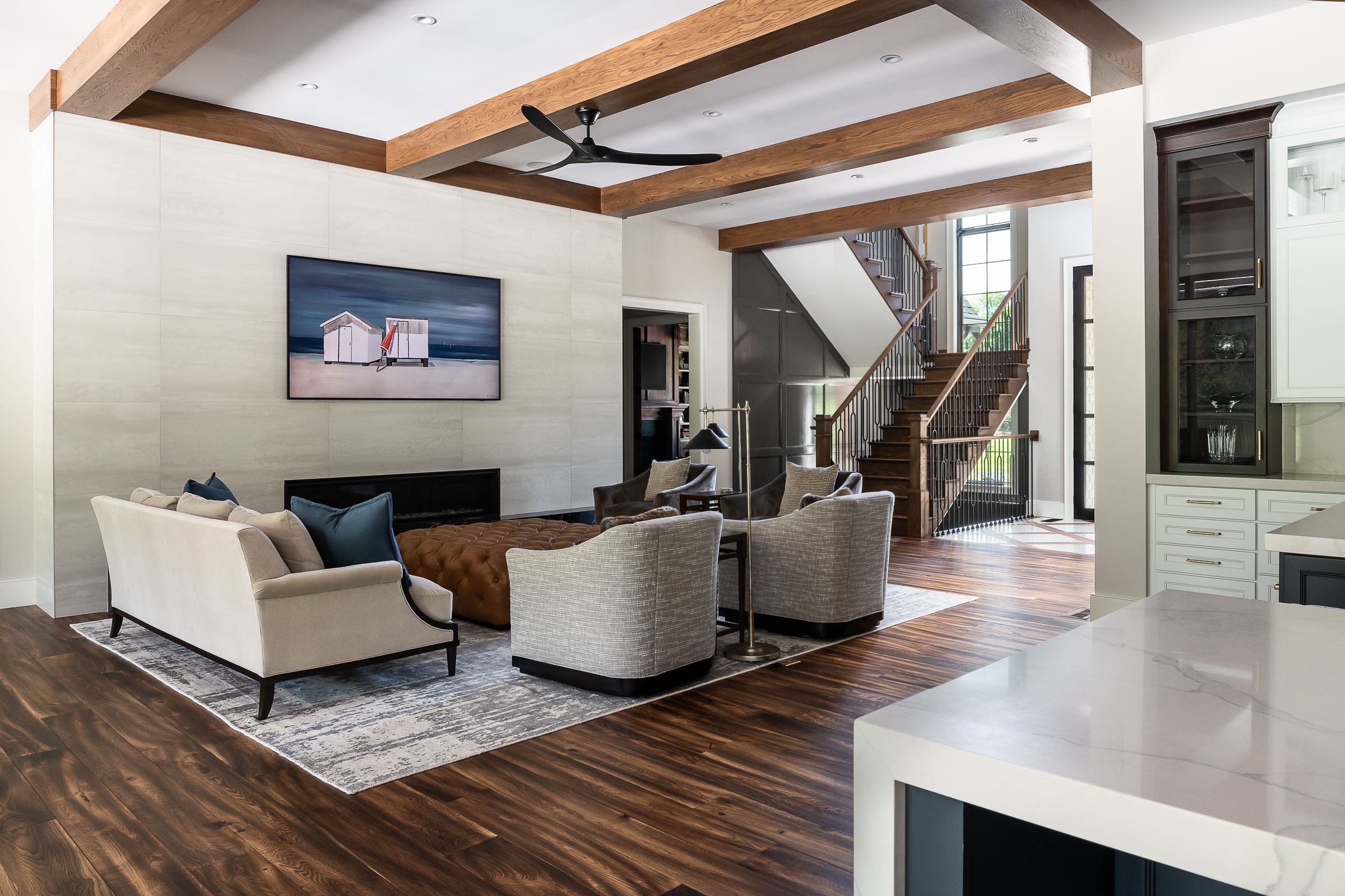 At Vanderbilt Homes, we design spaces that feel as incredible as they look—like this stunning open-concept living area featuring warm wood accents, custom millwork, and seamless flow for everyday living or elevated entertaining.
